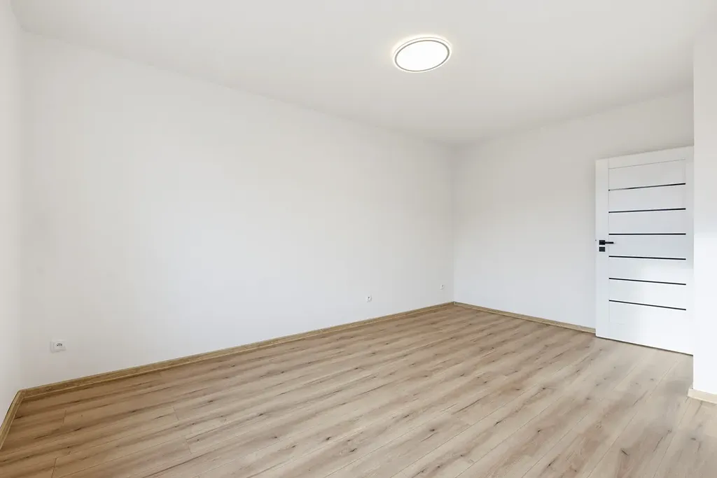 Součástí vybavení je moderní kuchyňská linka se spotřebiči, vestavěná skříň v předsíni a záclony, které dodávají prostoru příjemnou atmosféru.