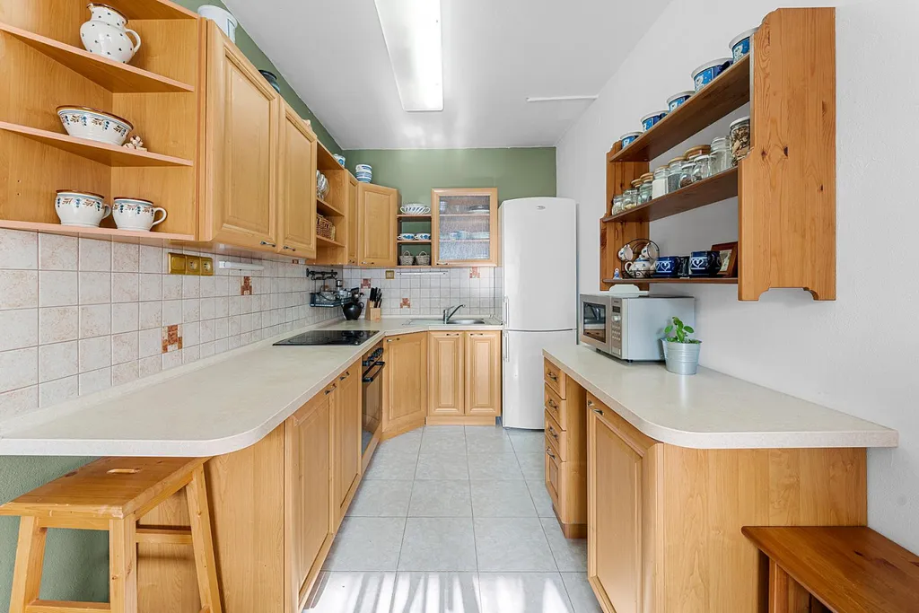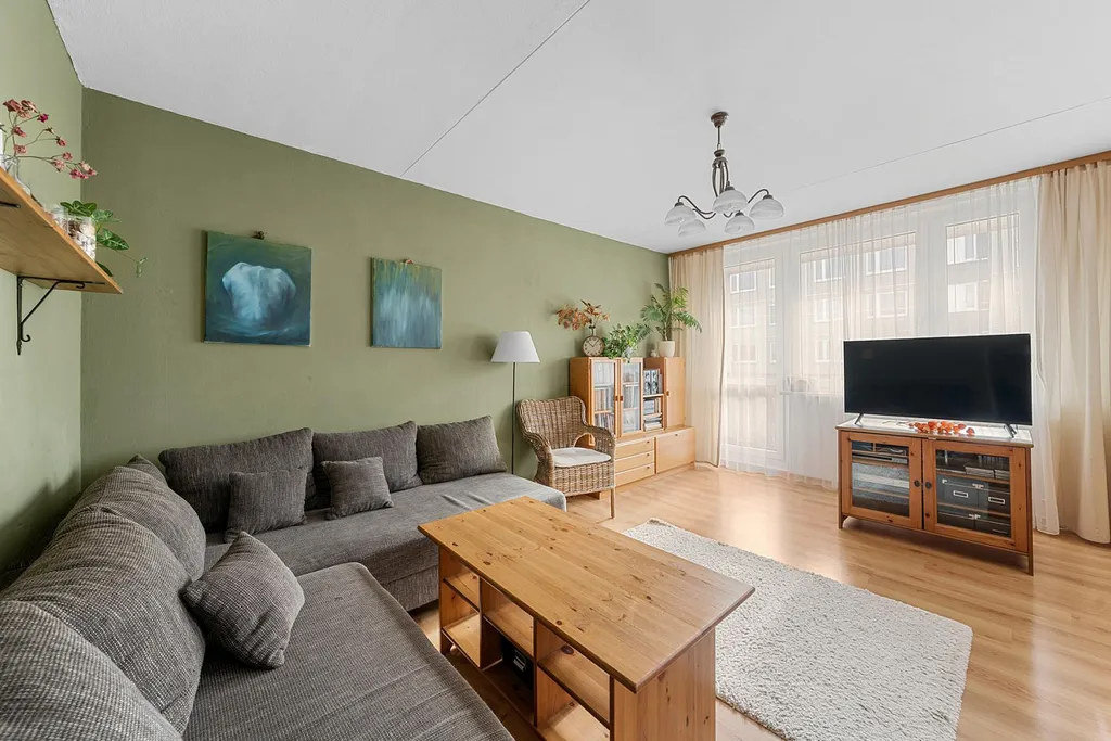 Tato velkorysá bytová jednotka se nachází ve třetím nadzemním podlaží nižšího bytového domu bez výtahu, kdy jsou na jednom patře pouze dvě bytové jednotky a skladové komory, jenž k nim přináleží.