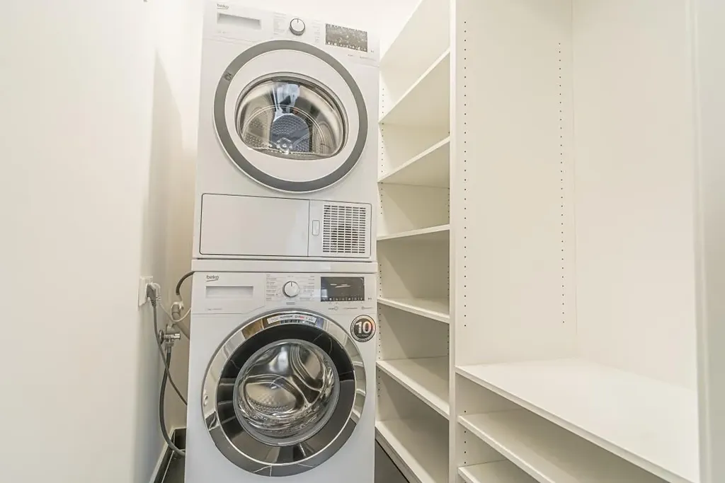 Byt je také vybaven mopem, vysavačem, žehlícím prknem a žehličkou, na oknech jsou instalovány žaluzie a záclony.