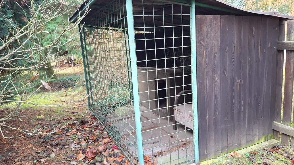 Zahrada o velikosti 742 m2 je osázena vzrostlými okrasnými dřevinami. Na zahradě je kotec pro psy a starší skleník.