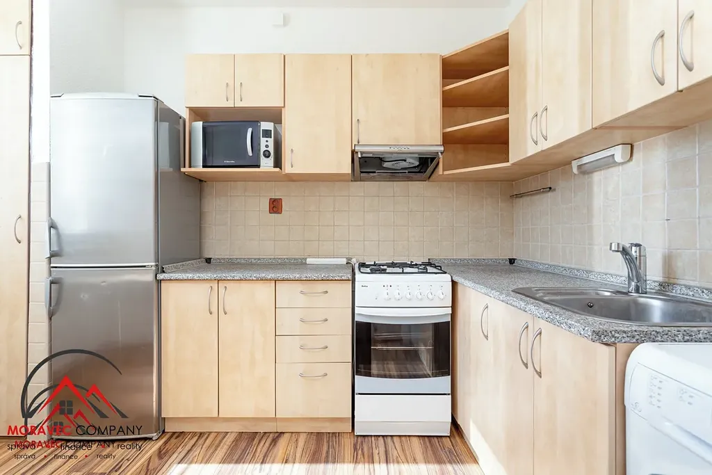 Byt je částečně vybaven a to Vám ušetří náklady s pořizováním vybavení. Vybavení bytu zahrnuje kuchyň s kombinovaným sporákem, digestoří, mikrovlnkou a lednicí. Koupelna je vybavena vanou, což poskytuje komfortní zázemí.