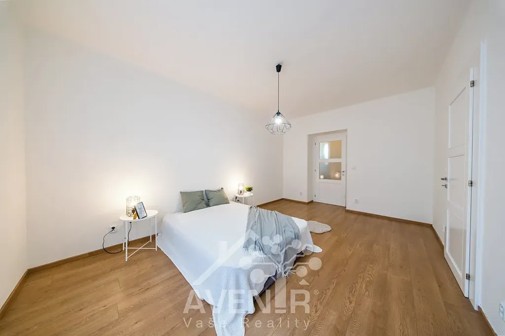 Samotný byt se nachází v přízemí čtyřpodlažního cihlového domu a působí velmi vzdušně a prostorně, což je dáno především vysokými stropy typickými pro starší cihlovou výstavbu. Nemovitost je ve velmi dobrém stavu a nevyžaduje nutnou rekonstrukci, takže může dobře posloužit jak pro vlastní bydlení, tak jako zajímavá investice k pronájmu.