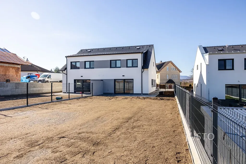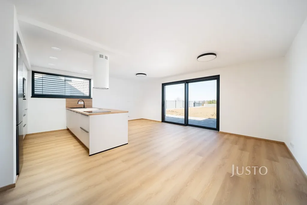 Dispozice 5+kk s užitnou plochou 121 m² poskytuje dostatek prostoru i pro větší rodinu. K jednotce náleží vlastní zahrada o výměře cca 282 m², tři parkovací místa a terasa.