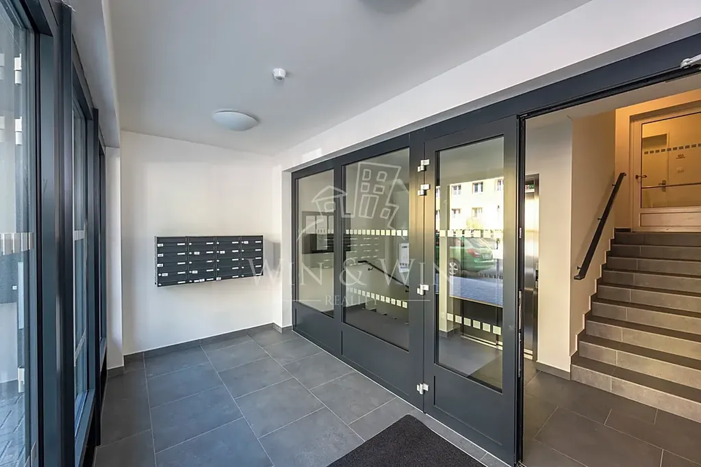 Bytová jednotka se nachází v 3. nadzemním podlaží a nabízí velmi příjemné a praktické dispoziční řešení. Velkým benefitem je velkorysá terasa o velikosti 13,2 m², ideální pro ranní kávu, večerní posezení nebo letní grilování.