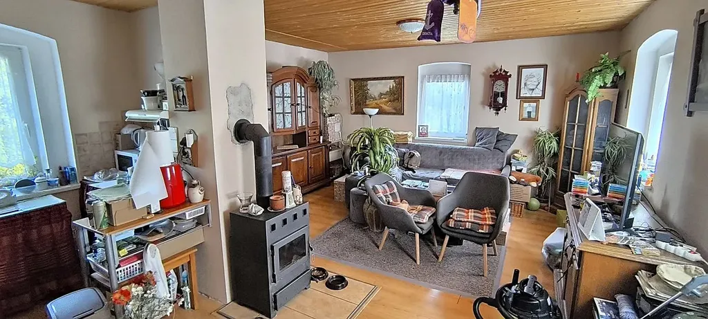 Dům prošel částečnou modernizací: střecha, okna, zateplená fasáda, elektroinstalace, rozvody vody a kanalizace, podlahy, dveře atd.