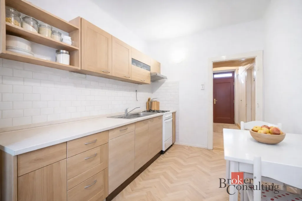Dispozice bytu tvoří samostatná kuchyně, prostorný pokoj, koupelna s vanou a oddělená toaleta. K bytu náleží také sklepní kóje, která poskytuje praktický úložný prostor. Byt má praktické dispoziční řešení a nabízí možnost upravit si interiér podle vlastních představ a vytvořit si tak příjemné a moderní bydlení.