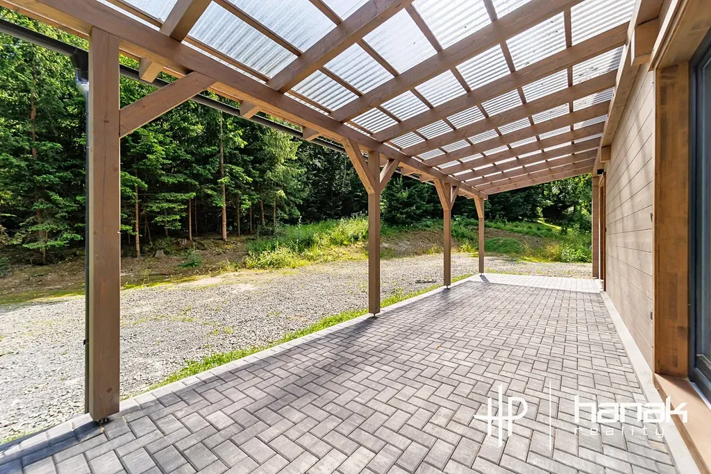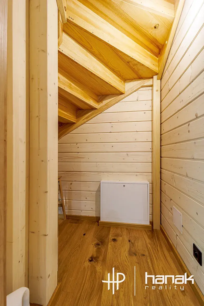 Předmětem prodeje je nedokončená nízkoenergetická dřevostavba z rakouského sušeného lepeného hranolu tl. 12 cm s dřevovláknitou izolací, která je naimpregnována prémiovou lazurou Adler Silverwood a postavena na zděné obvodové konstrukci.