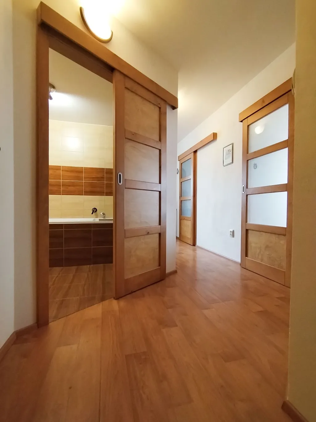 prostorné antré s bezpečnostními vstupními dveřmi, koupelnu s vanou, samostatné WC, dva neprůchozí pokoje (z jednoho je vstup na lodžii o velikosti 6,4 m² orientovanou na východ), dále kuchyň plynule navazující na světlý a vzdušný obývací pokoj s orientací na západní stranu.