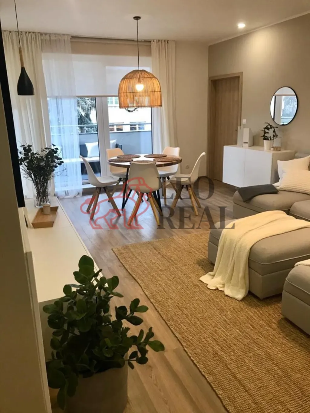 Byt sestává ze vstupní chodby, prostorného světlého obývacího pokoje, na nějž navazuje kuchyňská i jídelní část, dále dětského pokoje, ložnice, koupelny se sprchovým koutem a wc a další samostatné toalety. Z obývacího pokoje i ložnice lze vstoupit na velkorysou krytou lodžii s výhledem na město.
