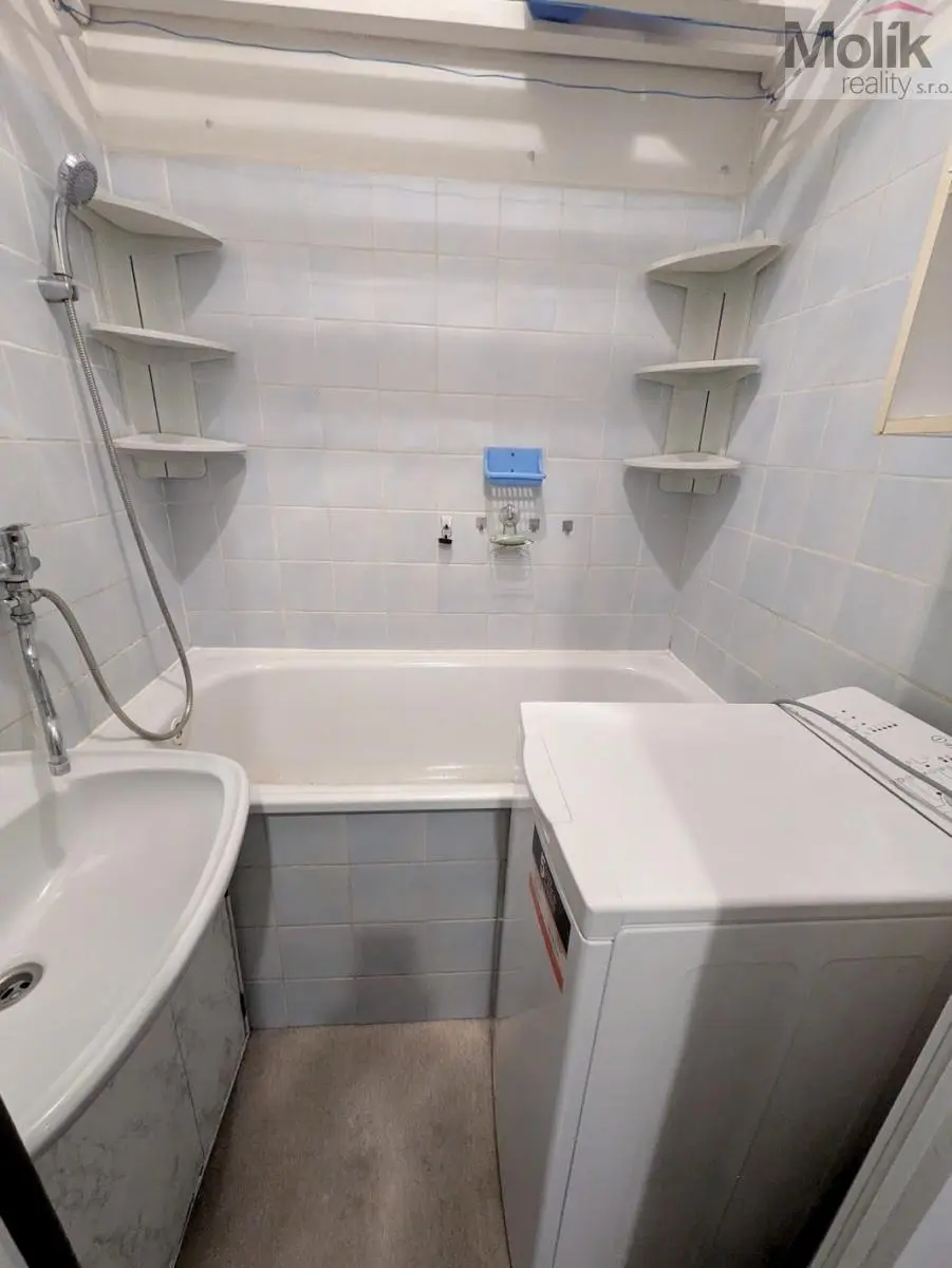 Oproti fotografiím v nabídce proběhla výměna vany za novou a byl opraven a vymalován strop v obývacím pokoji.