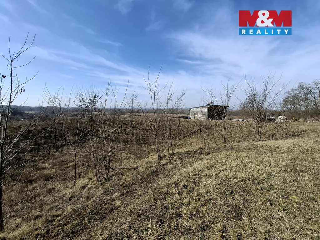 Pozemek s krásným výhledem do krajiny a na západ slunce.