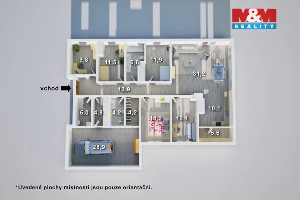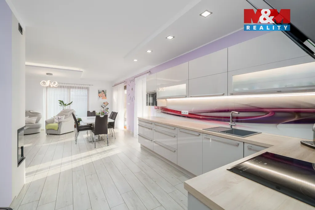 Nabízíme k prodeji nadstandardní rodinný dům z roku 2020, který vyniká promyšlenou dispozicí a kompletně bezbariérovým řešením. Nemovitost o celkové užitné ploše 174 m² poskytuje komfortní zázemí pro ty, kteří hledají klidné bydlení s výbornou dostupností. Srdcem domu je prostorný obývací pokoj propojený s kuchyní a přímým vstupem na terasu, která přirozeně navazuje na zahradu s bazénem. Praktická dispozice dále nabízí ložnici s vlastní šatnou, tři samostatné dětské pokoje, pracovnu, dvě koupelny a další šatnu. Součástí interiéru je rovněž technická místnost a garáž, které zajišťují veškerý provozní komfort. Dům je postaven s důrazem na kvalitu a bezbariérovost, což z něj činí ideální volbu pro vícegenerační bydlení či rodiny s dětmi. Exteriér tvoří udržovaná zahrada s bazénem, ideální pro relaxaci i rodinné aktivity. Strategické umístění obce zajišťuje vynikající dopravní dostupnost na dálnici D8 (Praha – Drážďany) při zachování klidu venkovského prostředí. Těšíme se na prohlídku.