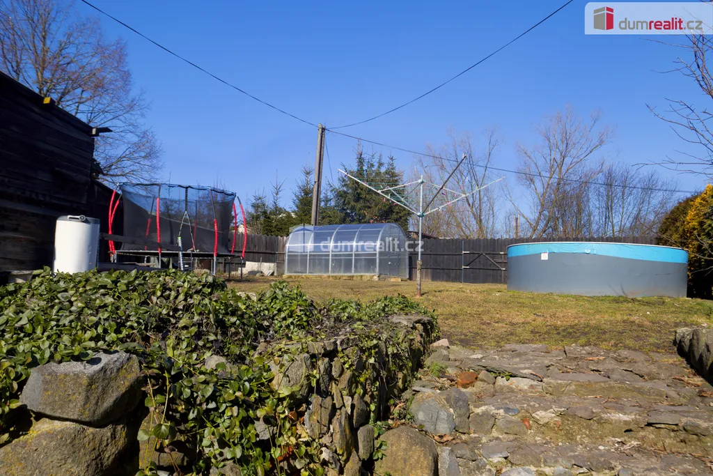 Velkou předností je soukromí – celý pozemek je obehnán vysokým neprůhledným dřevěným plotem, místy doplněným živým plotem, díky čemuž na zahradu není z okolí vidět. Zahrada nabízí příjemné místo pro odpočinek i setkávání s přáteli. Najdete zde skleník, trampolínu, bazén a také zastřešený barový pult s nedokončeným zděným grilem, který přímo vybízí k vytvoření stylové venkovní kuchyně či letního posezení.