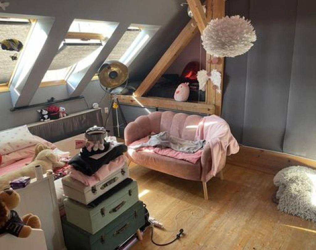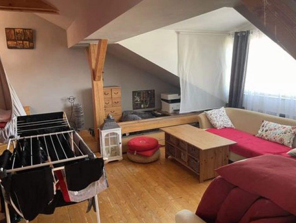 Jedná se o bytovou jednotku 2,5+kk v podkroví bytového domu. V bytě se nachází: koupelna (5,73 m2), zádveří (3,18 m2), WC (1,75 m2), kuchyň - kk (11,88 m2), pokoj (20,57 m2), obývací pokoj (36,35 m2), prostor obou podest (6,82 m2) a pokojík (6,38 m2). Okna jsou dřevěná střešní a plastová. Podlahy jsou z dlažby a palubek. Kuchyň je s linkou, varná deska. Koupelna s vanou, umyvadlo. Vytápění je ústřední etážové s plynovým kotlem, vč. teplé vody.