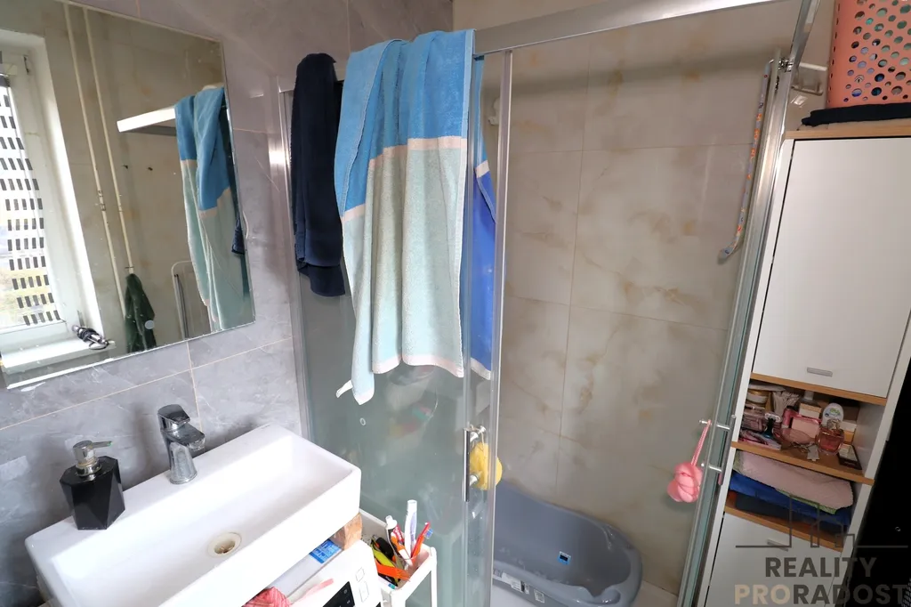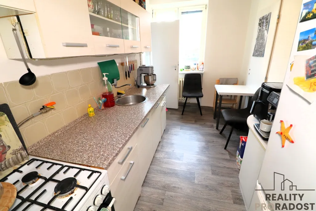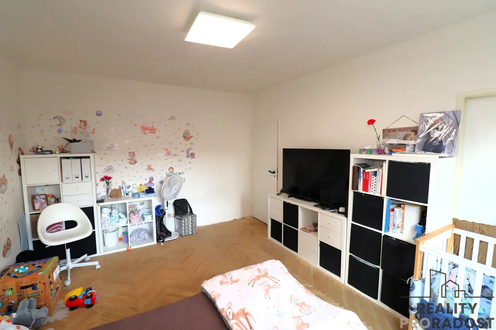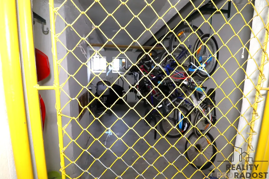 Byt je v dobrém stavu. Dispozice: předsíň, světlý obytný pokoj, samostatná kuchyně s linkou a dostatkem úložného prostoru, koupelna se sprchovým koutem a samostatné WC. Velkou předností je sklep o výměře cca 6 m² sloužící jako dílna – vybavený oknem a elektrickým rozvodem. K dispozici je společná kočárkárna a velká předzahrádka.
