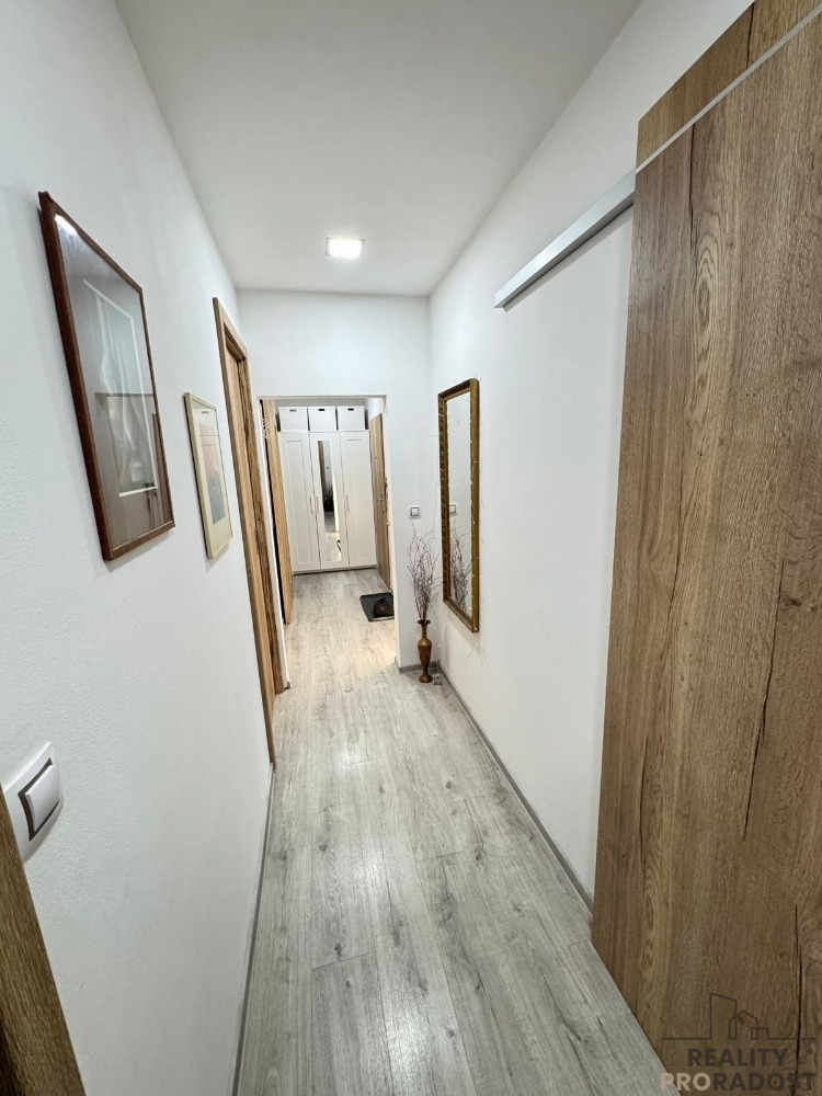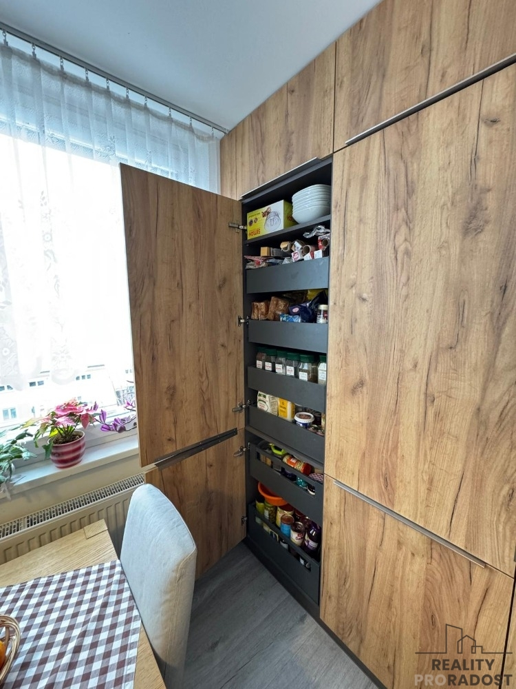 Nabízíme vám výhradně ke koupi byt o dispozici 3+1 se zasklenou lodžií na ulici Komenského v Grygově. Byt se nachází v posledním patře čtyřpatrového bytového domu s výtahem a disponuje užitnou plochou 75 m². Celková rekonstrukce bytu proběhla před třemi roky. Z bytu, s orientací na východ, je krásný výhled do okolí. Byt se prodává částečně vybavený. V domě ústřední vytápění, ohřev vody řešen novým elektrickým bojlerem umístěným v koupelně. Nová elektřina a stupačky. Bytový dům prošel v roce 2008 revitalizací, nová střecha, výměna oken za plastová a kompletní zateplení. K bytu navíc náleží sklepní kóje. Byt je velice dobře dispozičně řešený. Obývací pokoj, koupelna se zděným jádrem, ložnice, komora a kuchyně jsou propojeny dlouhou chodbou. Za kuchyní se nachází poslední pokoj, který je jediný průchozí z kuchyně. Bezpečnostní dveře do bytu. Podlahy nové lino. V oknech žaluzie. Internet wi-fi, TV satelit. V obci je výborná občanská vybavenost jako pošta, lékař, škola, školka, vyhlášená pizzerie, potraviny a kadeřnictví. V obci se nachází sportovně rekreační areál. Dostupnost do Olomouce vlakem či autem do 10 minut. Veškeré dotazy a právní info vám rádi poskytneme. Byt volný nejpozději od 1.7.2026. PENB není dosud dodán, tedy třída G.