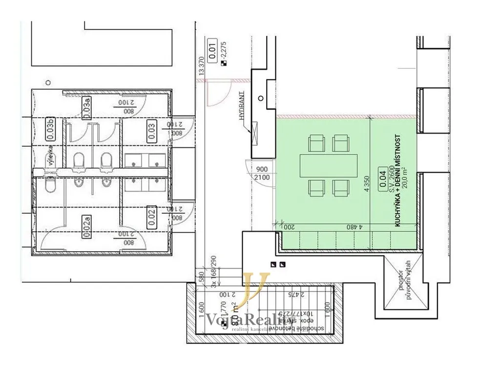 Jednotka je koncipována jako open-space s jednou oddělenou místností, jakožto kanceláří pro management subjektu v I. NP. Hygienické zázemí včetně denní místnosti a skladovací jednotky je umístěno v I.PP.