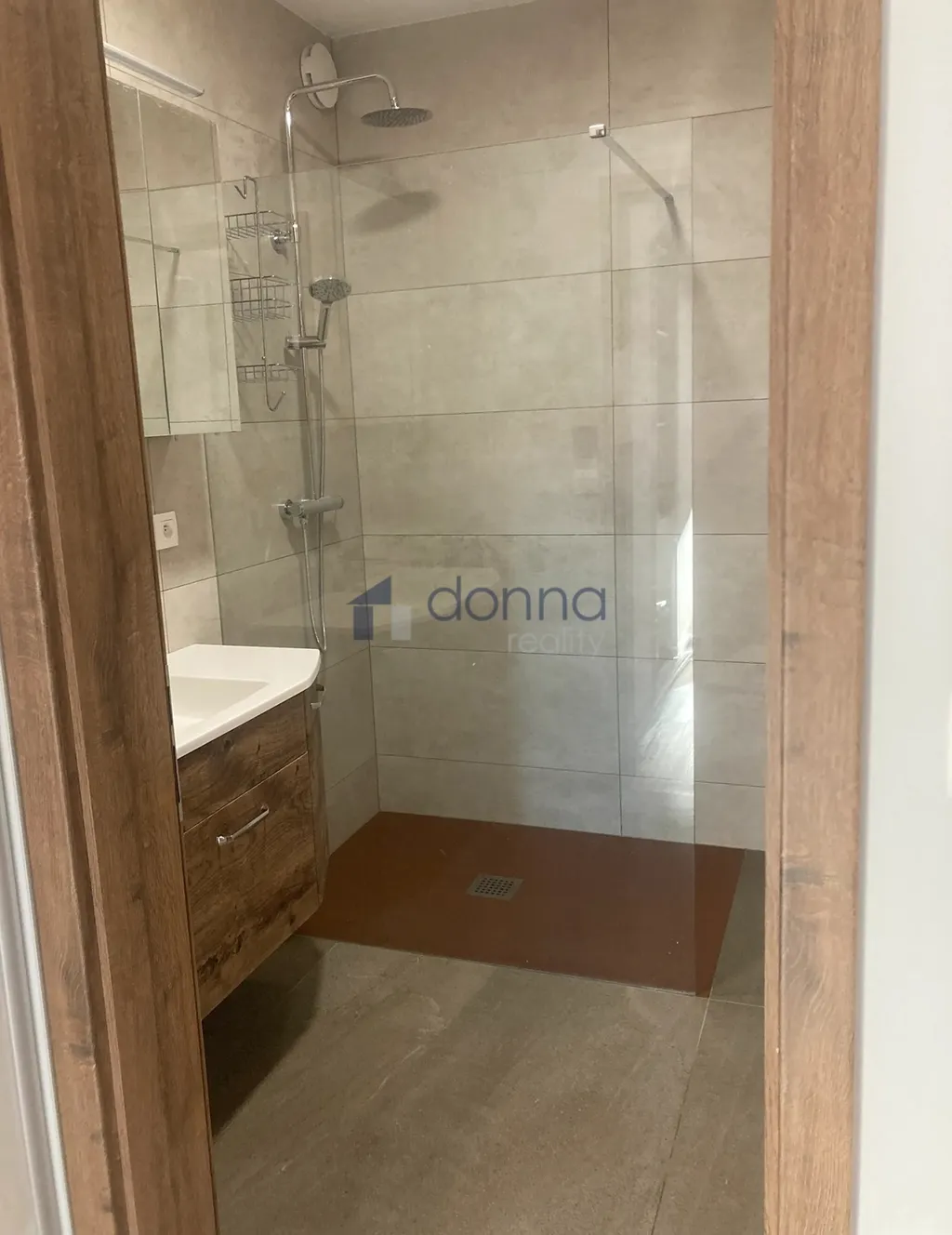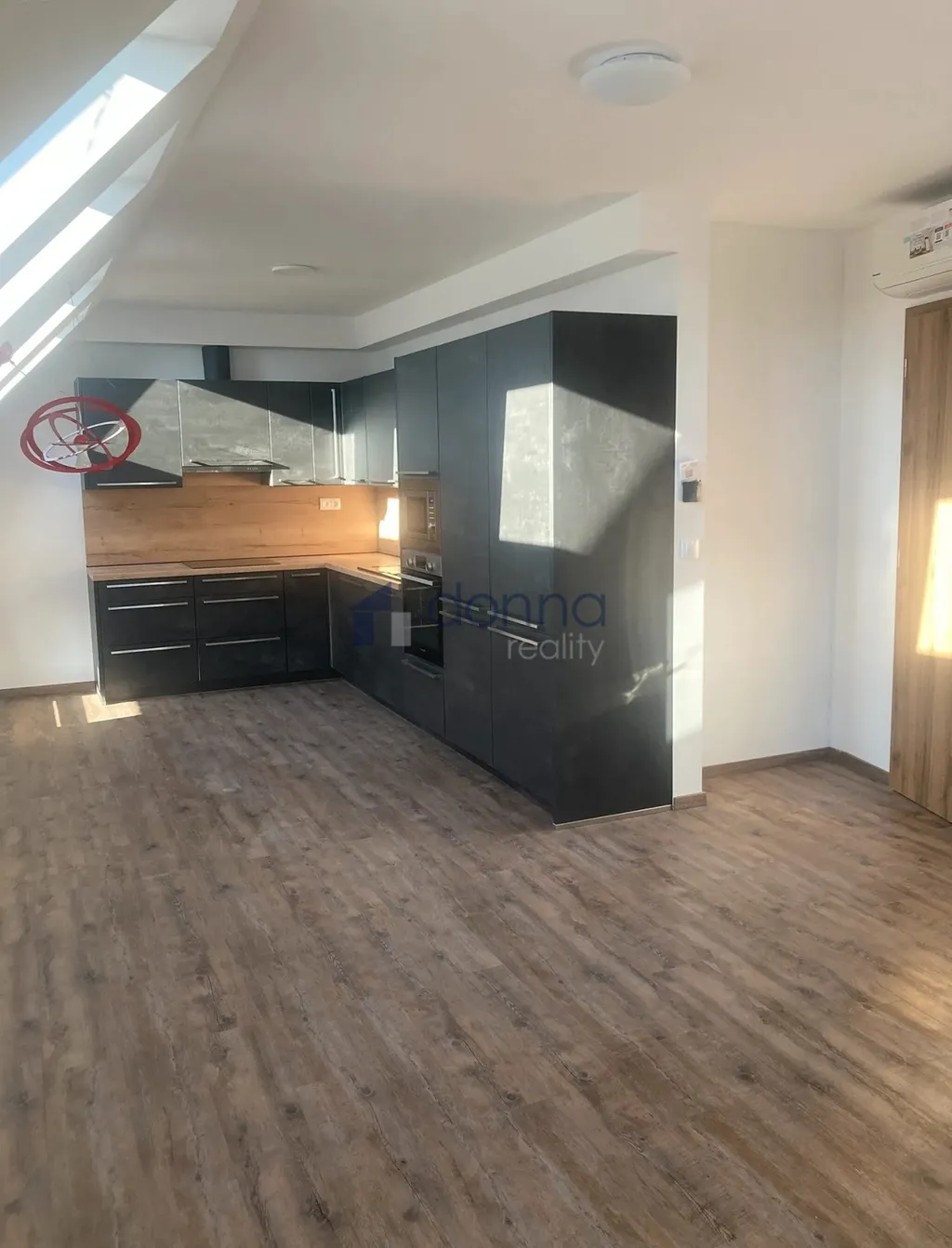 V bytě je klimatizace a podlahové topení.
