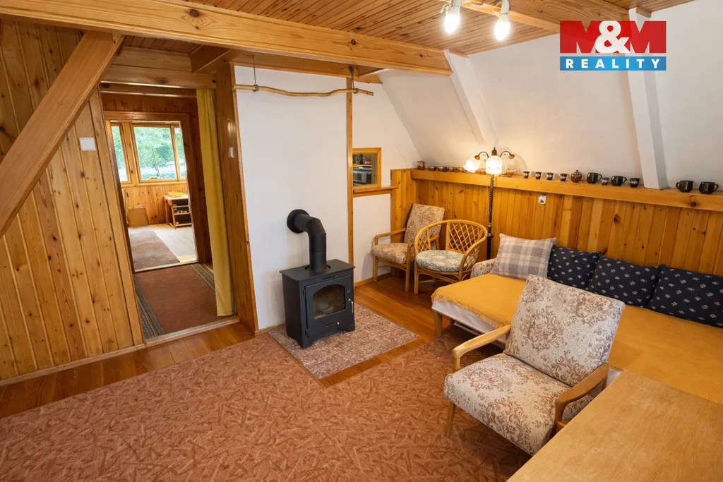Jestli hledáte chatu, kde slyšíte ptáky a ne souseda řezat beton flexou, tak čtěte dál. Na polosamotě stojí chata připravená k okamžitému užívání s užitnou plochou cca 100 m² a velkorysým, celooploceným pozemkem 1 848 m² (z toho 1 773 m² zahrada). Prostor pro několik aut, na odpočinek, zahradu, houpací síť i večerní posezení u ohně tu rozhodně nechybí.