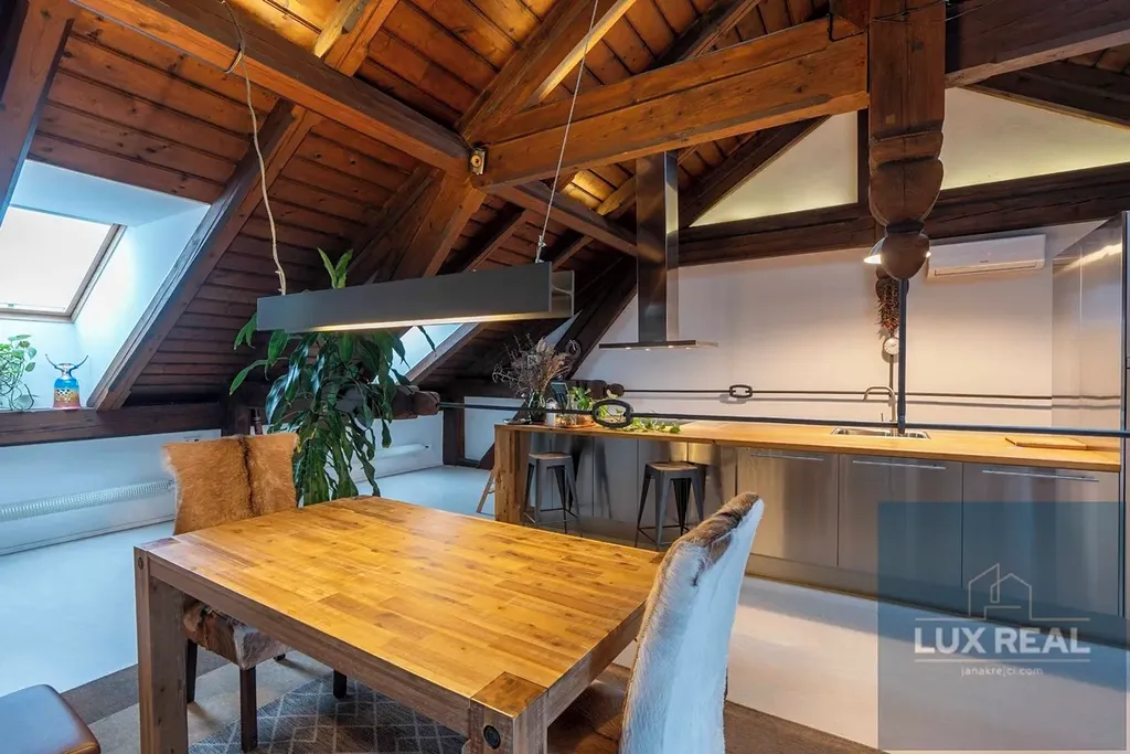 Penthouse má zvýšené stropy , které vytvářejí vzdušný a unikátní prostor, ale zároveň je možné tento prostor dle potřeb rozdělit i na více místností.
