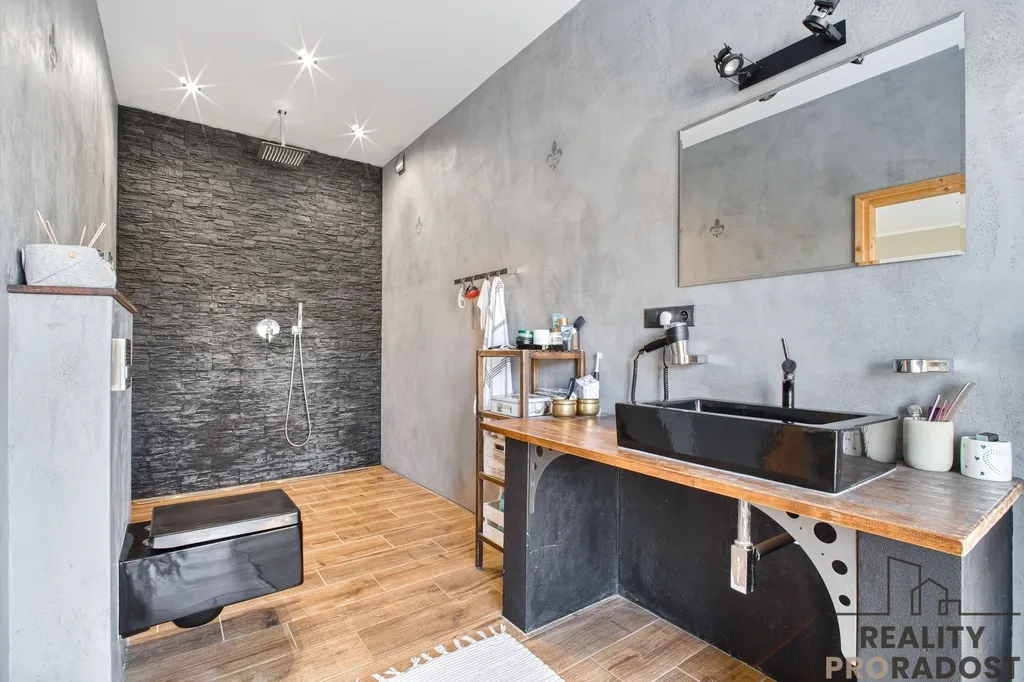 Vytápění je podlahové, zdrojem ohřevu vody i tepla je elektrokotel značky CosmoTHERM a bojler Dražice. Uprostřed udržované zahrady se nachází laminátový bazén (Astralpool), luxusní vířivka (USSPA) a zahradní altán s posezením. V celém domě jsou použity velmi kvalitní povrchové úpravy a kvalitní materiály.
