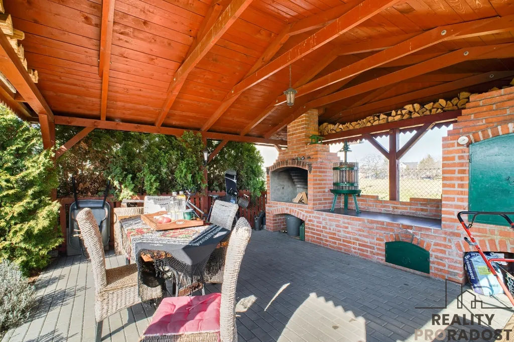 Užitnou plochu rozšiřuje prostorný altán s příjemným posezením a prostorným grilem spolu s udírnou (z cihly). Vedle altánu na udržované zahradě se nachází bazén o velikosti 7 x 4 m. Z domu je nádherný výhled na zeleň a na Beskydy.