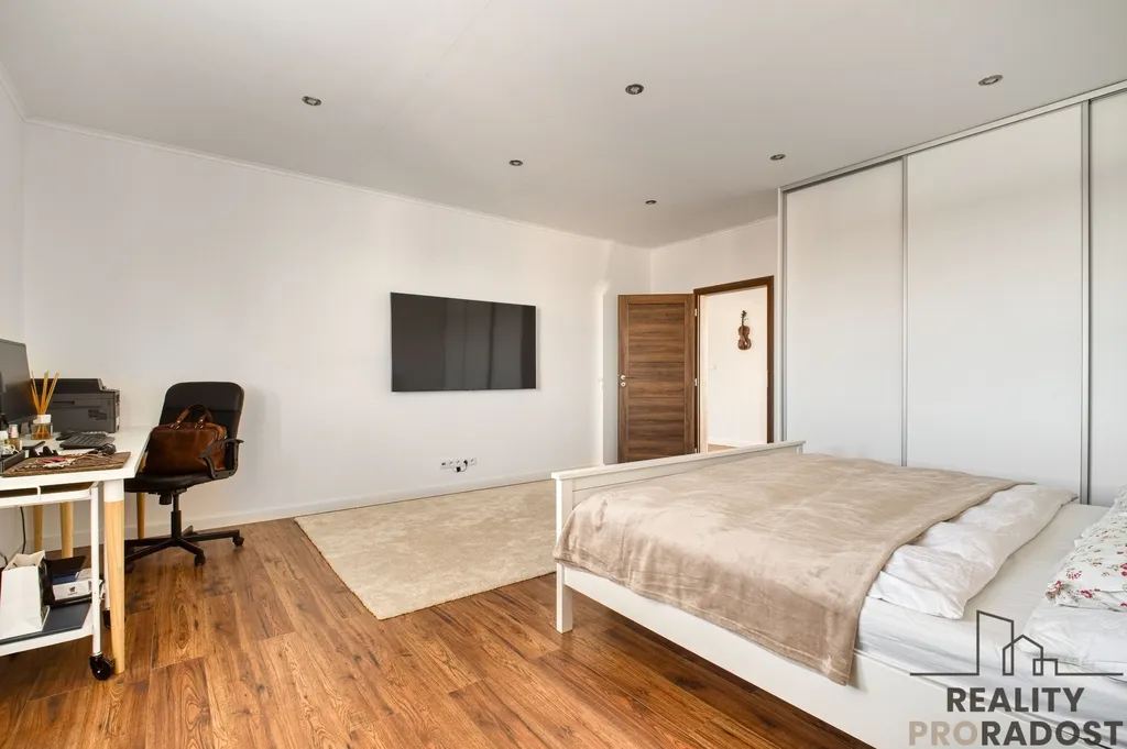 Soukromou zónu v patře tvoří tři samostatné ložnice. Hlavní ložnice (master bedroom) disponuje vlastní prostornou šatnou a vstupem do koupelny s vanou i sprchovým koutem.