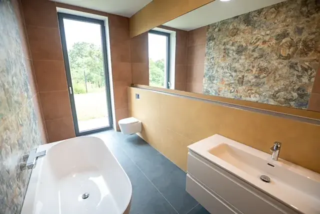 Ke standardu bytu patří tepelné čerpadlo, velkoformátová okna s elektrickou žaluzií, reflexní folií, podlahové vytápění.