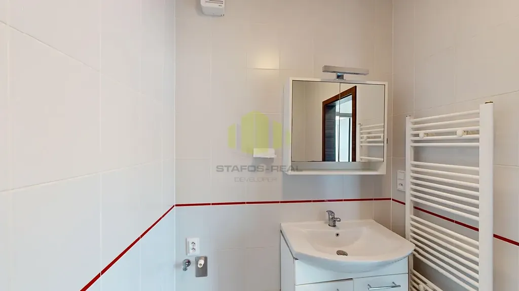 Nabízíme pronájem nízkonákladového bytu 2+kk o ploše 55,97m2 s lodžií 9,43m2 ve velmi žádané a klidné lokalitě k bydlení, na ulici Janského, Olomouc - Povel. Městská část Povel je charakteristická svou výhodnou pozicí v blízkosti centra s bohatou občanskou vybaveností v bezprostředním okolí a perfektní dopravní dostupností MHD, nájezd na dálnici cca 6minut jízdy. Byt je orientován na Jih a nachází se v 5.NP sedmipodlažní novostavby bytového domu kolaudovaného koncem roku 2014. Součástí bytu je obývací pokoj s kuchyňským koutem (řešený na míru včetně vestavěných spotřebičů, vyjma lednice) se vstupem na lodžii, ložnice s francouzským oknem (z obou pokojů přístup na lodžii), předsíň, koupelna, samostatné wc a šatna. Součástí vybavení koupelny je umyvadlo se zrcadlem a skříňkou, vana s vanovou zástěnou, odtah par, otopný žebřík a příprava na pračku. Toaleta samostatná - wc závěsné - geberit, s odtahem par. Byt spadá svou energetickou náročností do třídy C - úsporná.