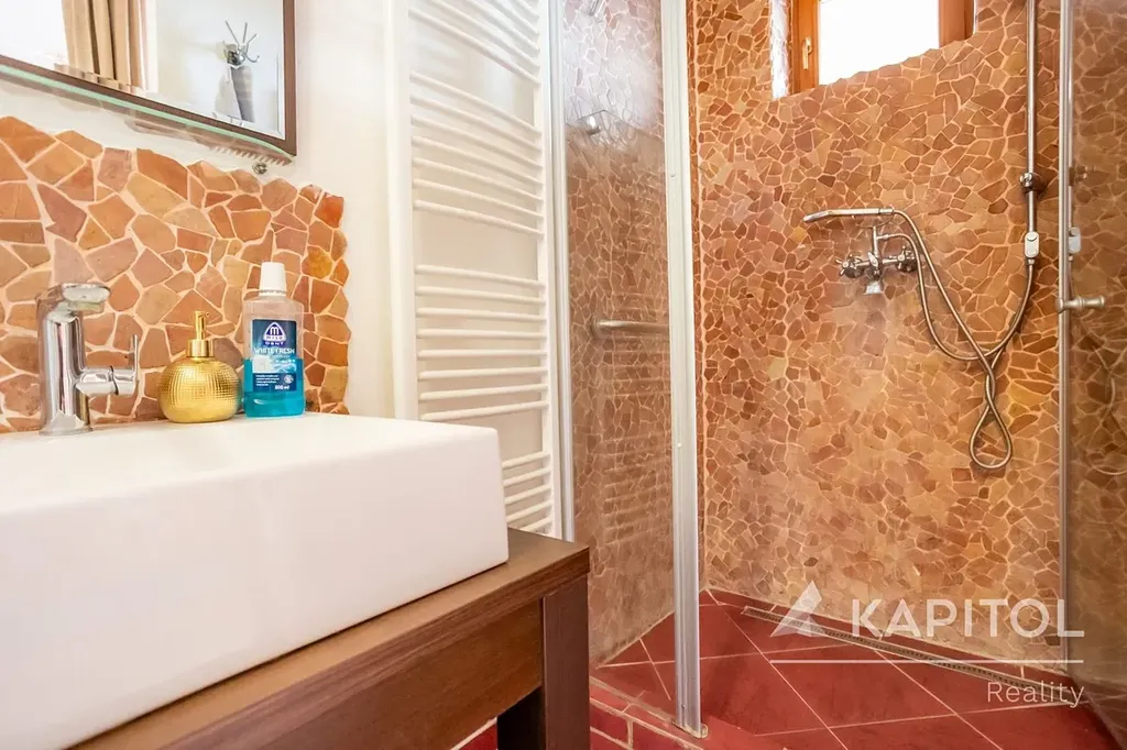 Dům je aktuálně v dispozici 6+1 s krásnou zahradou, celková plocha pozemku je 477 m2. Dům je možné užívat k bydlení a současně také k podnikání z domova, jelikož jeho prostory jsou dostatečně rozmanité. Dům je podsklepen - nachází se zde prádelna, sklepní prostory, prostorná garáž, kotelna. V přízemí se nachází vstupní chodba, kuchyně, obývací pokoj se zasklenou lodžií, koupelna se sprchovým koutem, wc a umyvadlem. V patře se nachází 4 pokoje, z jednoho je možnost udělat kuchyni, dále lodžie, koupelna a samostatné wc. V podkroví je jeden velký pokoj a odkládací místo pod střechou.