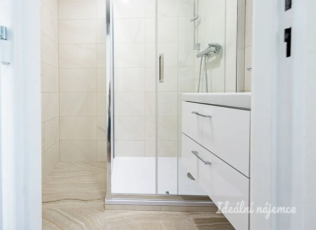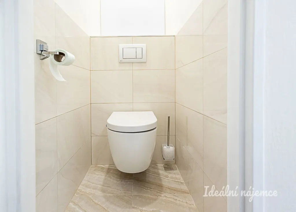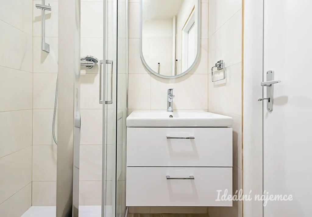 V koupelně se nachází sprchový kout, umyvadlo se zrcadlem a koupelnová skříňka. Toaleta je umístěna samostatně. Pračka má vyhrazené místo v praktické komoře. V předsíni je k dispozici skříň, botník a věšák.