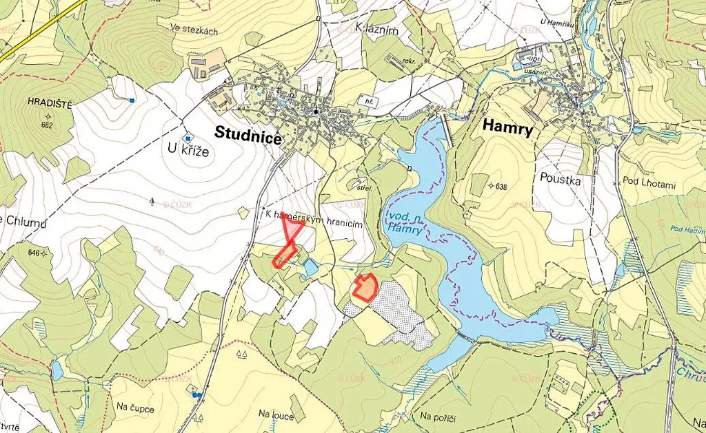 Nabízíme k prodeji tři zemědělské pozemky ve výlučném vlastnictví, nacházející se v katastrálním území Studnice u Hlinska (okres Chrudim). Pozemky jsou zapsány na listu vlastnictví č. 119 a leží v malebné krajině v blízkosti vodní nádrže Hamry, v klidném prostředí s čistou přírodou a zemědělským charakterem.