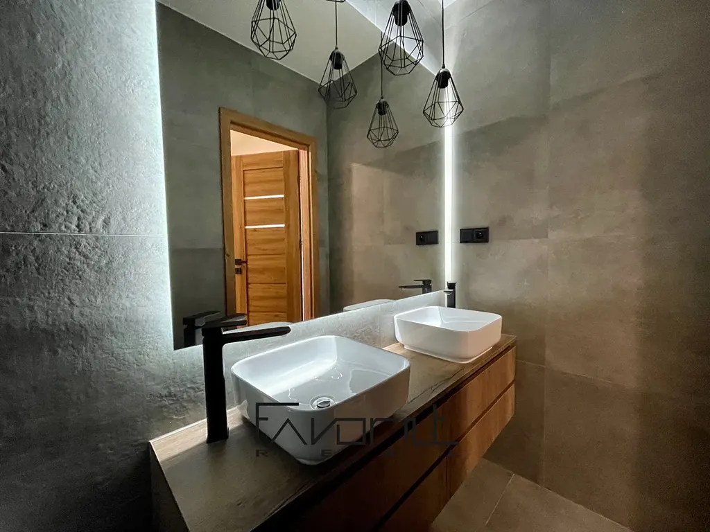 V koupelně jsou nové obklady, dlažba, dekory, 2x umyvadlo se skříňkou, baterie, zrcadlo a vana. WC je zvlášť.