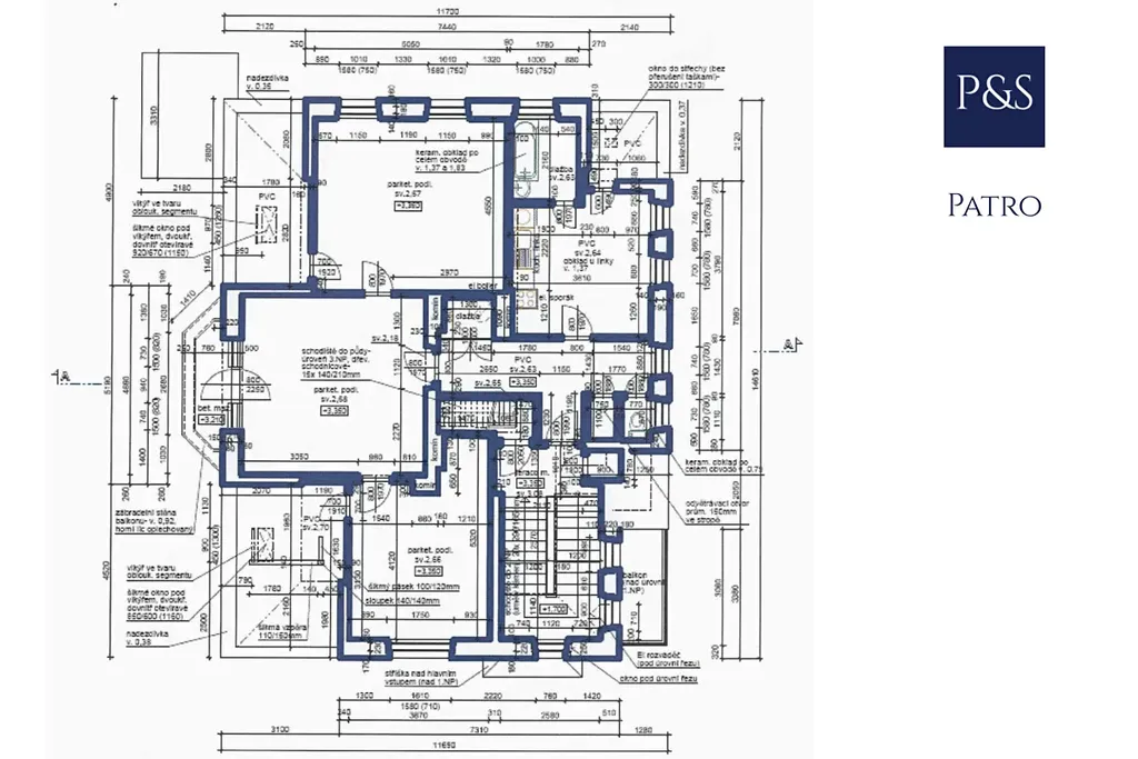• Užitná plocha: 406,92 m² (suterén 94,74 m², přízemí 147,91 m², patro 133,17 m², podkroví 93,60 m²)