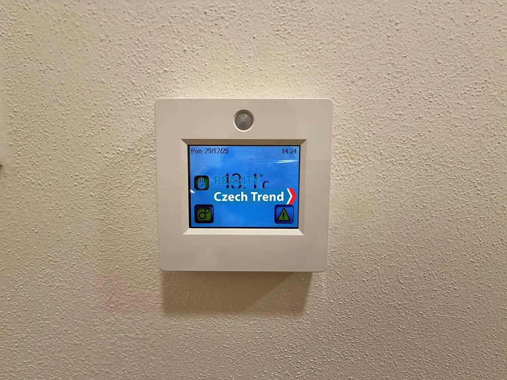 Vytápění je řešeno komfortním elektrickým podlahovým topením, ohřev vody zajišťuje elektrický bojler, komfort zvyšuje instalovaná vzduchotechnika.