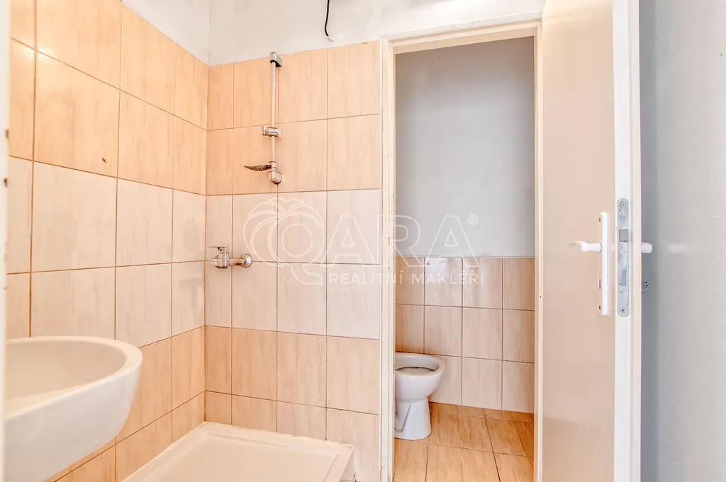 Interiér si zachoval původní elektřinu i podlahy, což vám dává svobodu při budoucí rekonstrukci, zatímco koupelna s toaletou již prošla částečnou modernizací v podobě obloženého jádra.