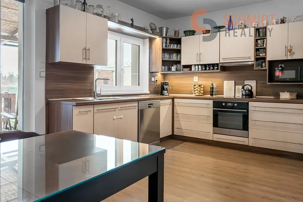 Dům je z velké části podsklepený, má průjezd využitelný jako kryté parkování (2,9 × 10 m) a nabízí možnost vestavby plnohodnotného obytného podkroví, na půdě jsou připraveny rozvody vody, topení i odpadů.