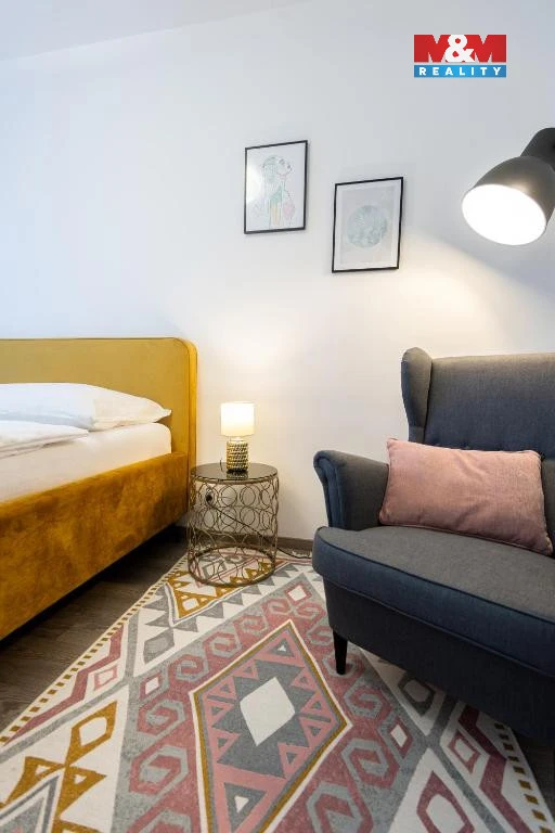 Dominantou bytu je světlý obývací pokoj s kuchyňským koutem, který je vybaven kuchyňskou linkou se spotřebiči a nabízí dostatek prostoru. Z obývací části je vstup na balkon, který poskytuje příjemné místo k odpočinku.