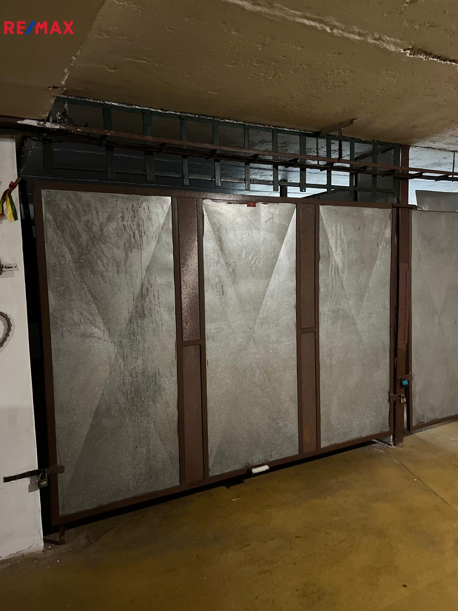 Společné prostory jsou osvětlené a v samotné garáži je instalováno světlo ovládané vypínačem. Garáž je uzavřena plechovými výklopnými vraty.