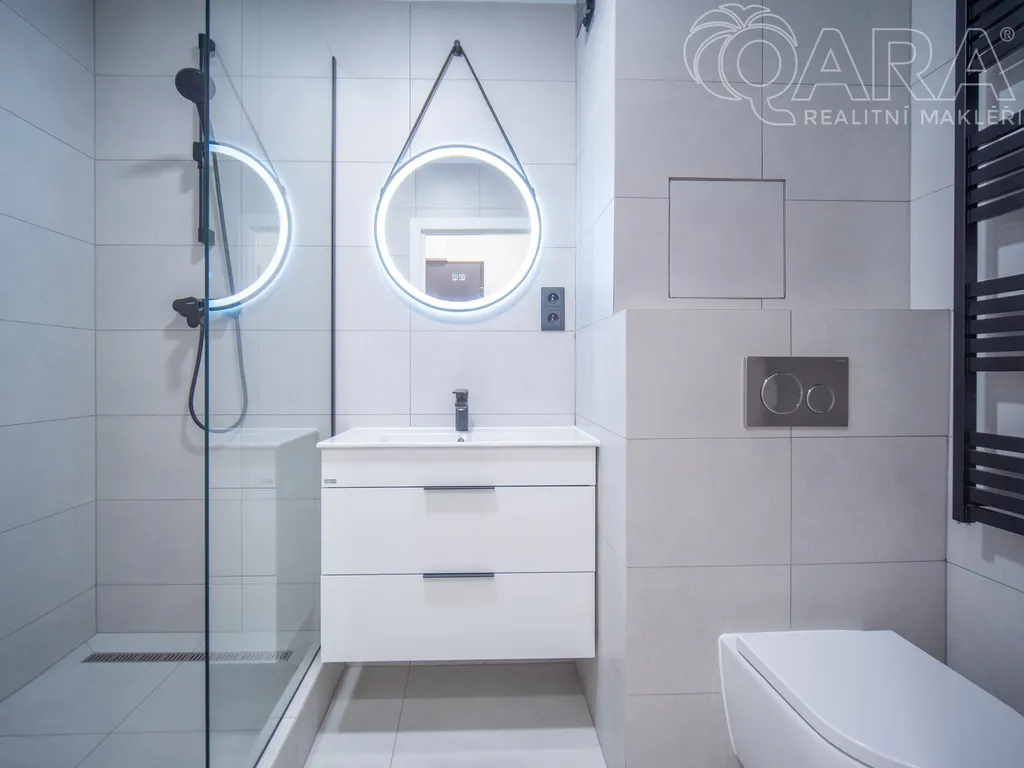 Okna jsou orientována jižním směrem do "dvora", kde je minimální provoz. Kuchyň je plně funkční (včetně lednice/mrazáku, myčky, sporáku, trouby i digestoře. Jádro je vyzděné a nabízí koupelnu se sprchovým koutem a toaletou. Bonusem je připojená pračka mimo koupelnu.