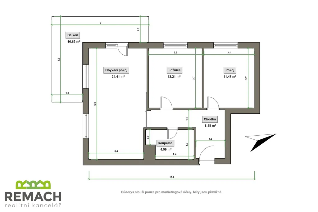 Pronájem bytu o dispozici 3+kk s balkonem, nacházející se v novostavbě s nízkou energetickou náročností, ve vyhledávané lokalitě Zahrádky, odkud to máte jen kousek do centra města.