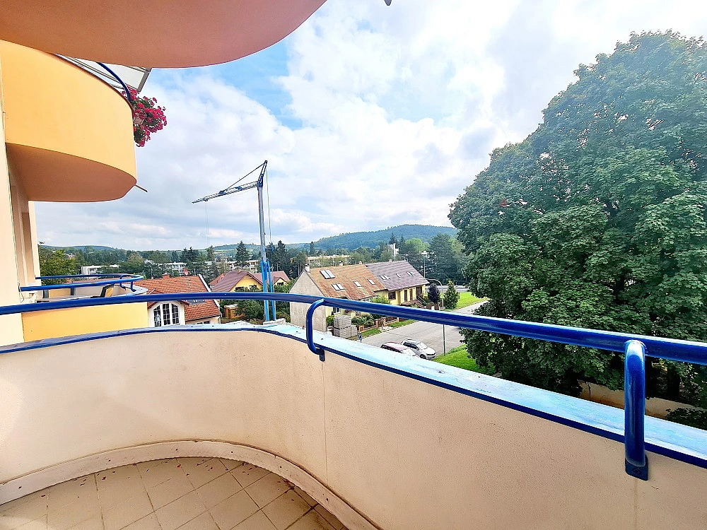 Dispozice: pokoj s kuchyňským koutem 25 m² se vstupem na balkon s krásným výhledem, předsíň 4 m², koupelna s vanou, společná s WC 4 m², k dispozici sklep.