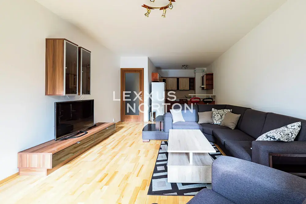 Byt nabízí obývací pokoj s kompletně vybaveným kuchyňským koutem, ložnici, koupelnu s toaletou a jižně orientovanou lodžii se vstupem z obou pokojů. Součástí pronájmu je také parkovací stání. Novostavba se nachází nedaleko centra města a byla navržena s důrazem na harmonii s okolním prostředím podle principů Feng Shui. Celý rezidenční komplex tvoří čtyři bytové domy s kamerovým systémem v rámci areálu a 24 hodinovou centrální recepcí, která zajišťuje komfort i bezpečí obyvatel.
