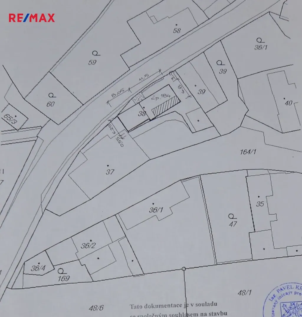 V rámci městysu je dům na jeho opačné části, než jsou cesty napojené k dálnici - viz. foto.
