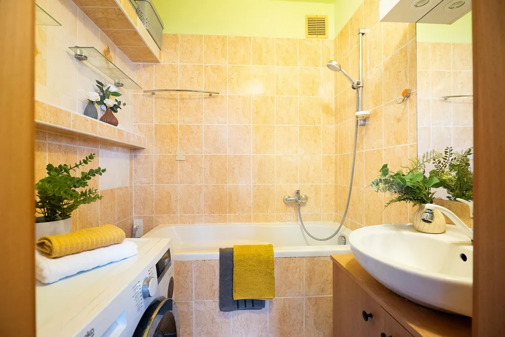 Na obývací část navazuje samostatná kuchyň, která je vybavena kuchyňskou linkou se spotřebiči. Dispozice kuchyně poskytuje dostatek pracovního prostoru a pohodlí při každodenním vaření. Byt dále nabízí koupelnu s vanou a samostatnou toaletu, praktickou komoru přímo v bytě a prostornou chodbou, která propojuje všechny místnosti v domácnosti. Velkou výhodou je také lodžie, která nabízí příjemné místo pro odpočinek nebo ranní kávu. K bytu náleží také sklepní kóje, která rozšiřuje úložné možnosti pro domácnost.
