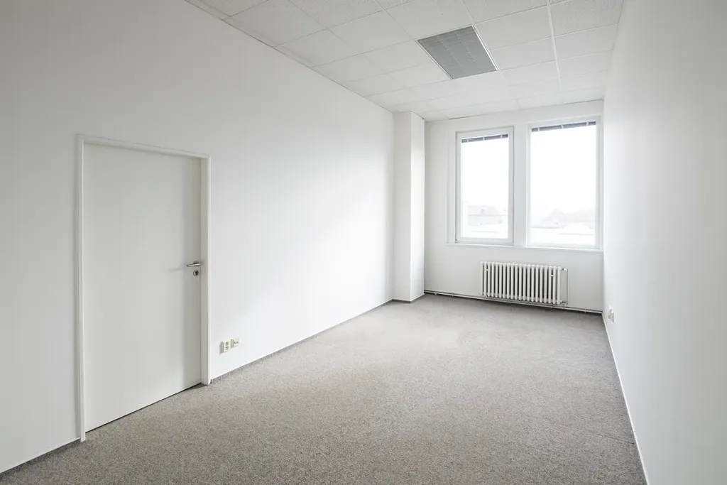 • Popis prostor k pronájmu: Jedná se o menší kancelář bez vybavení, vhodnou pro menší tým. Kancelář je vybavena klimatizací a předokenními žalužiemi, na podlaze je koberec. Na patře je sdílená kuchyňka a sociální zařízení.