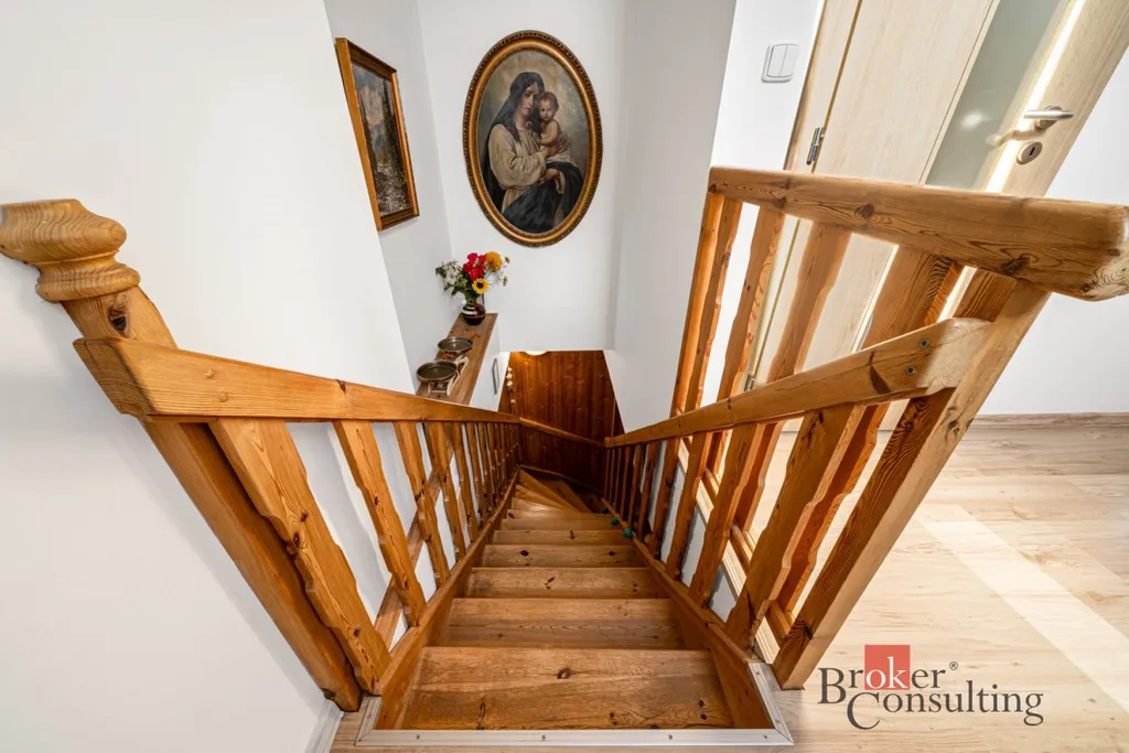 Dominantou bytu je otevřený obytný prostor v horním podlaží a krásné výhledy na historickou zástavbu a okolní kopce.