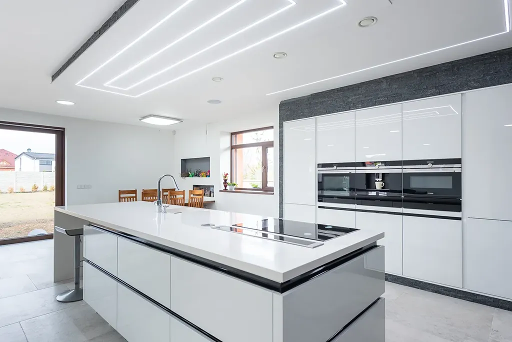 Interiér je rozdělen do obytné, společenské a zábavní zóny. Obytná část nabízí 3 ložnice, 2 pracovny (jedna z pracoven je ložnice), 4 koupelny, dvě samostatná WC a šatnu. Dominantou domu je velkorysý obývací prostor o rozloze 88 m² s kuchyňským koutem a impozantním kuchyňským ostrůvkem o velikosti 1,2 × 3,7 m značky Bauformat ve vysokém bílém lesku. Kuchyň je vybavena špičkovými spotřebiči Siemens a Miele a doplněna nadstandardní spižírnou. Součástí společenské části je také pracovna se samostatným vstupem, technická místnost a hlavní koupelna s vanou, sprchovým koutem, bidetem, pisoárem, toaletou a prádelní částí.