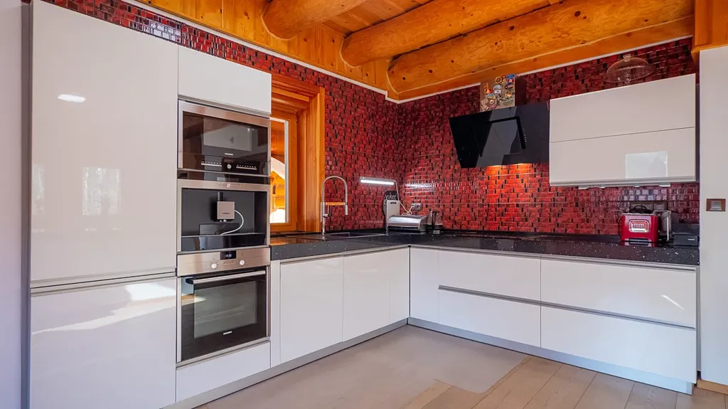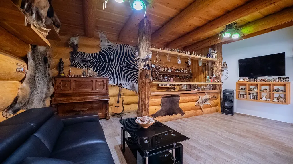 Tato unikátní stavba, kombinující srubovou a zděnou architekturu, nabízí dvě nadzemní podlaží a dvě suterénní úrovně. V hlavních podlažích se nachází obytné prostory a garáž. První suterén je ideální pro relaxaci, zábavu nebo jako kancelářské zázemí. Druhý suterén slouží pro technickým zařízení, skladovací prostory a nabízí další garáží.