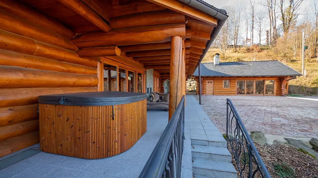 Součástí usedlosti je menší samostatný srub, který slouží jako společenská nebo relaxační místnost. Srub je vybaven luxusním dřevěným nábytkem, kuchyňskou zónou, krbem a udírnou.